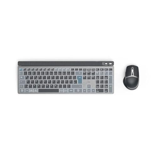 - لوحة مفاتيح لاسلكي وماوس لاسلكي أثناء التنقل: لوحة مفاتيح وماوس قابل لإعادة الشحن بدون كابلات - بطارية ليثيوم بوليمر قوية لتوفير أقصى قدر من المرونة.
