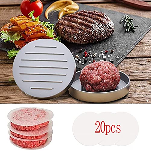 Generic - Hamburger Patty Maker Baking Mould Set Free 20 Pieces Baking Paper Hamburger Pate Mould 11 cm Diameter with Removable Wooden Handle for Delicious Hamburger Patties BBQ Important Tools for The Family