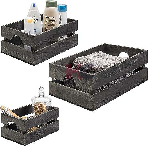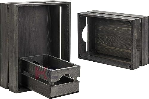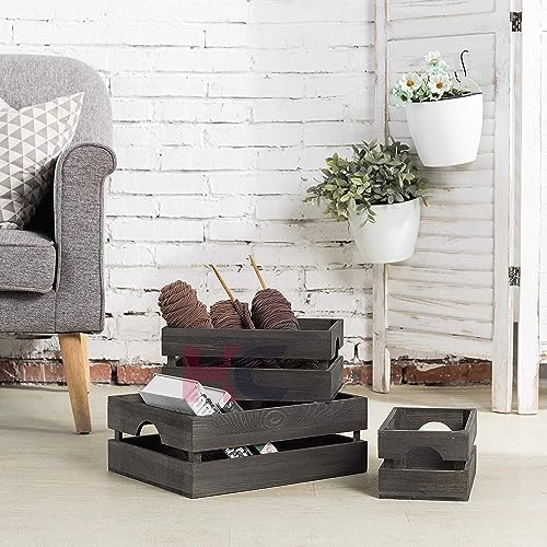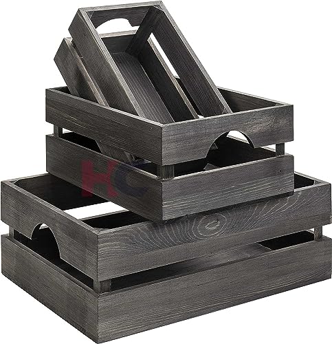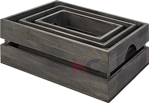 Hamdan - Hamdan Rustic Solid Wood Storage Organizer Box with Handle, 3 Piece Various Size Decorative Nesting Crate-Rustic Grey