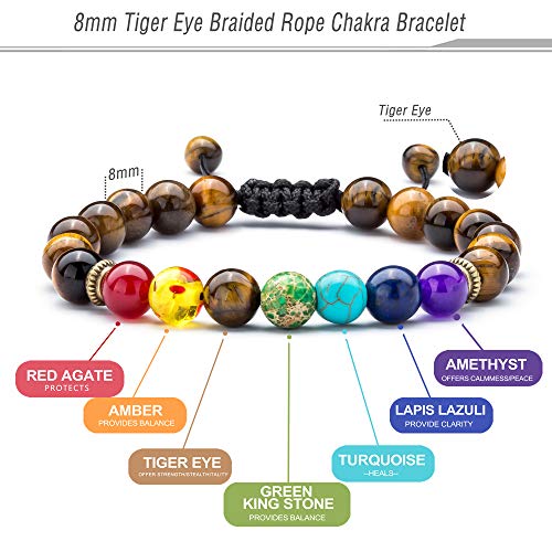 Hamoery - Hamoery Men Women 8mm Lava Rock Beads Chakra Bracelet Braided Rope Natural Stone Yoga Bracelet Bangle, regular, Stainless Steel, no information