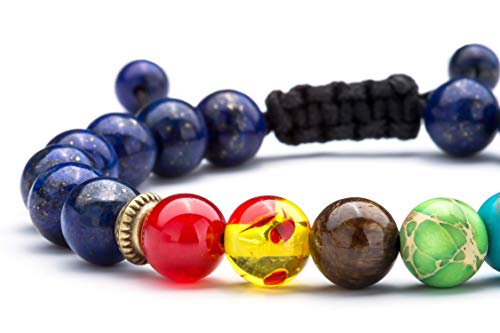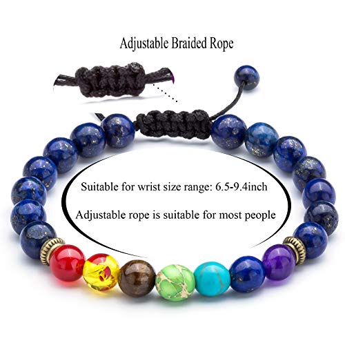 Hamoery - Hamoery Men Women 8mm Lava Rock Chakra Beads Bracelet Braided Rope Stone Agate Bracelet Bangle(Lapis Lazuli)