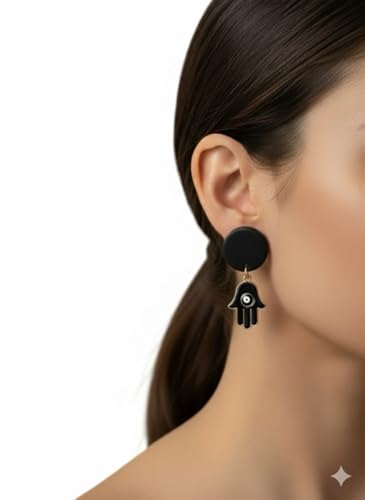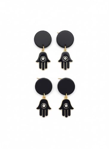Generic - اقراط متدلية على شكل عين الحسد من همسا، قرص دائري مع تعليقة متدلية، طول 3.5 سم
