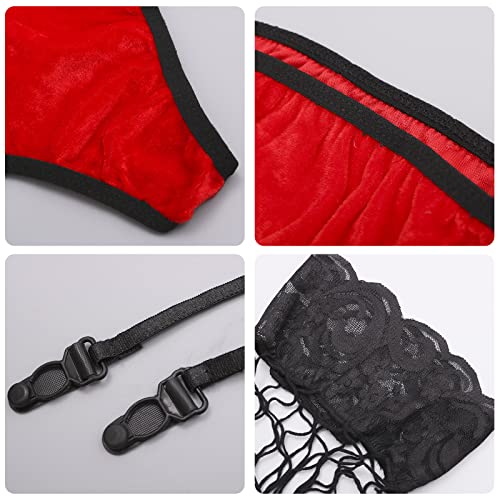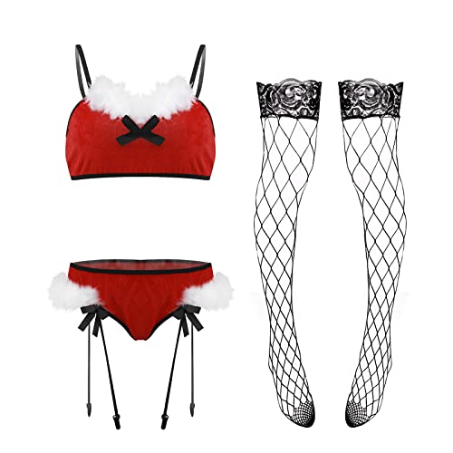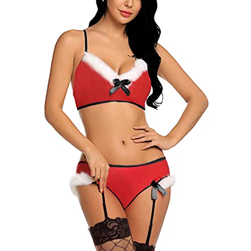 هنادي - طقم ملابس داخلية مثيرة للنساء من هانادي، طقم ملابس داخلية مثيرة للكريسماس مكون من 3 قطع، طقم مكون من 4 قطع، مقاس واحد