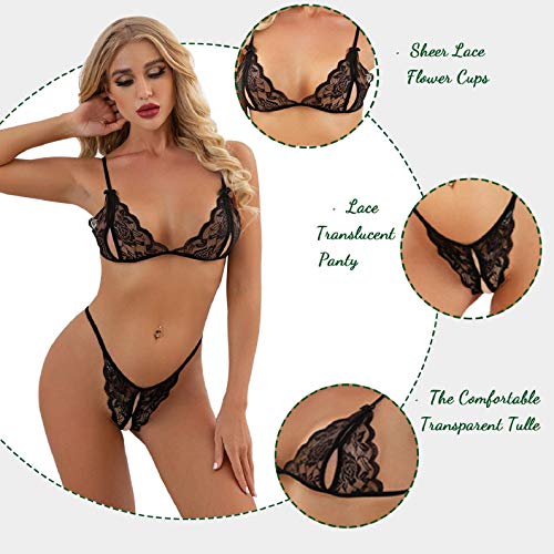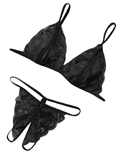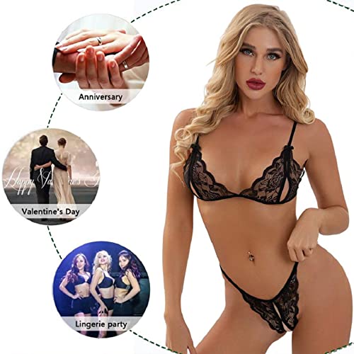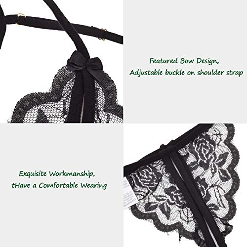 هنادي - طقم لانجيري كامل مكون من حمالة صدر ثونغ سترينج للنساء من هانادي، طقم لانجيري من الدانتيل، طقم ملابس داخلية كلاسيكية عصرية من قطعتين، ملابس داخلية بيبي دول لرحلات الزفاف والكريسماس طوال العام، اسود،