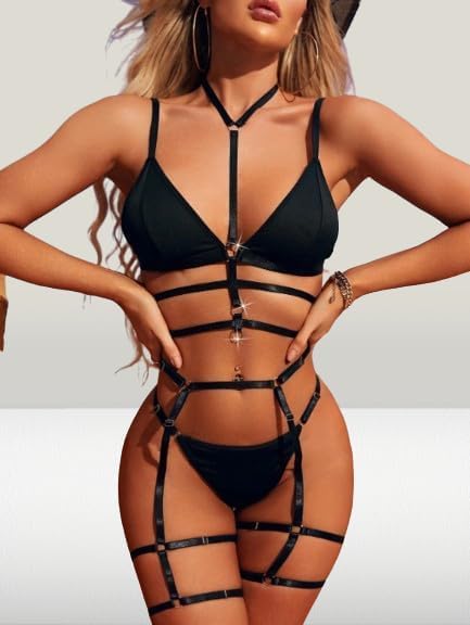 Hanady - Hanady Women Sexy Lingerie Set Cotton Lingerie Set with Ring Attached Belt
