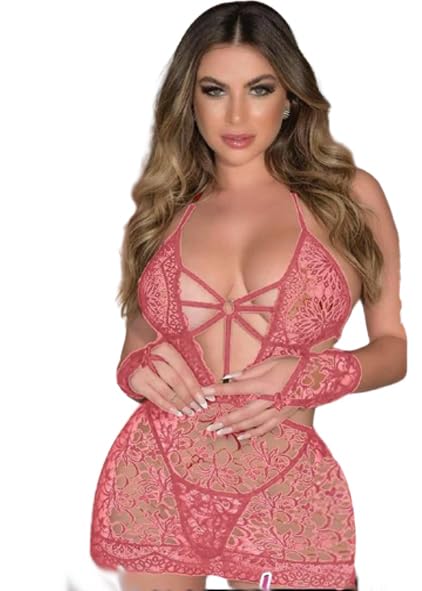 هنادي - طقم سالوبيت بكباسين تيدي للنساء من هنادي - مقاس واحد - قماش دانتيل