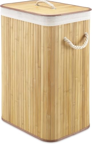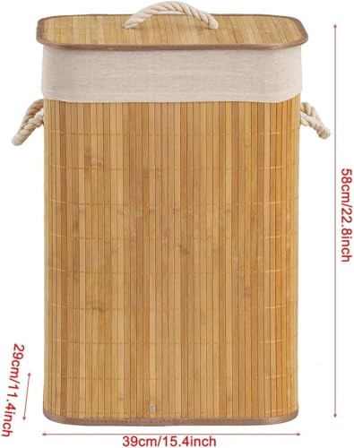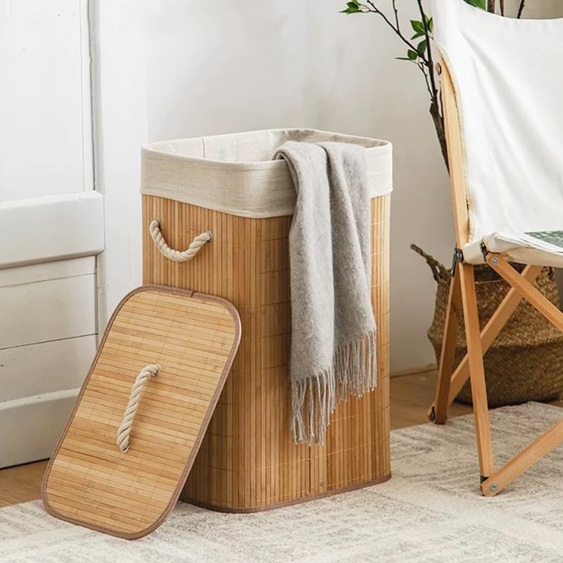 Hanaiette - Laundry Hamper with Rope Handles, Bamboo Basket with Lid, Storage for Clothes and Towels