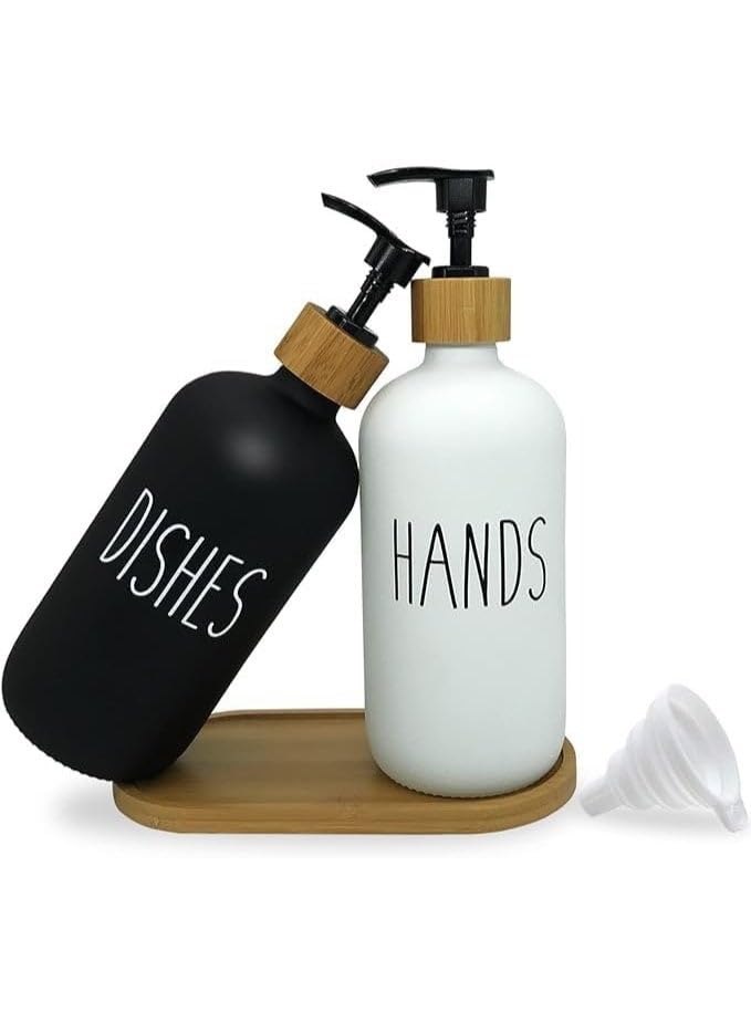 generic - Hand and Dish Soap Dispenser Set 2Pcs Glass Liquid Soap Dispenser Bottles with Pump for Bathroom, Kitchen Sink, (Black&White)