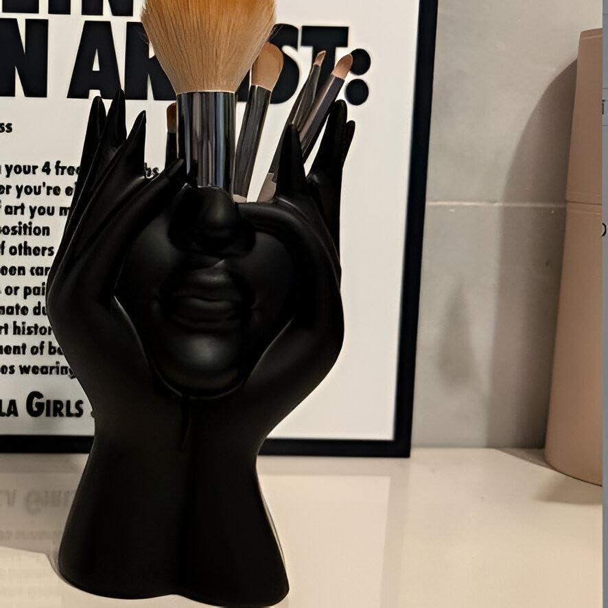 Generic - Hand Art Holder - Black hand sculpture organizing 17cm tall, perfect for makeup brushes, facial tools and fresh flowers, featuring a sleek modern face design for a polished vanity look.