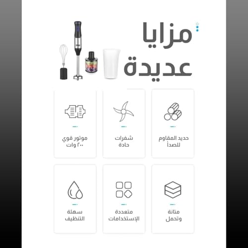 - One tool for everyday Egyptian cooking – This 4 in 1 hand blender set works as an immersion blender, chopper and whisk, with turbo and variable speed control to make molokhia, soups, garlic and smoothies with less effort.