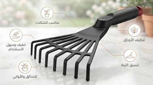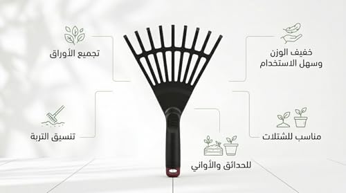 - A hand comb for pot, seedlings and small spaces that work efficiently as a manual garden comb and a small leaf broom for the narrow space between plants and the edges of the sink and is very suitable for seedlings, flower tubs and homemade herbs.