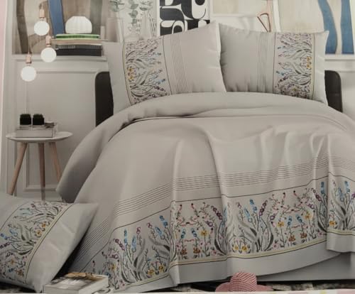 Generic - Hand Embroidered 100% Cotton Bed Sheet Set, Pink, 4 Pieces, Size 280x260cm, Includes Pillows 70x50cm and 1 Pillow Case 180x45cm (Graphite)