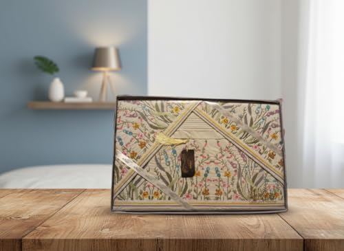 - Color and Design: Elegant pink color with multi-color embroidery and decorative stripes give a modern and elegant look for bed decor