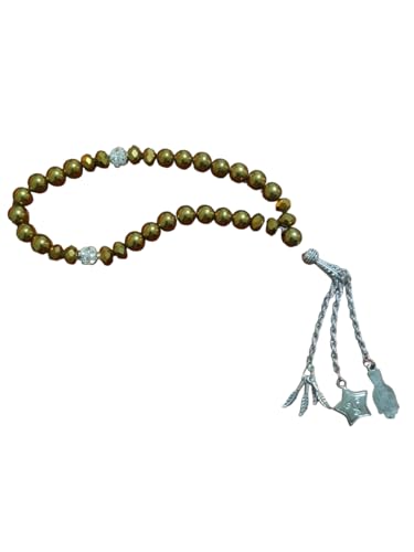 Generic - سبحة HAND MADE 33 حبة من الولي المصقول عالي الجودة قلادة معدنية زينة و خيط معدني