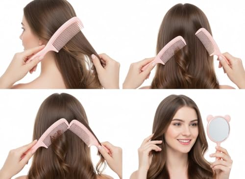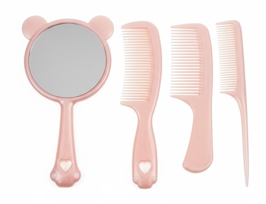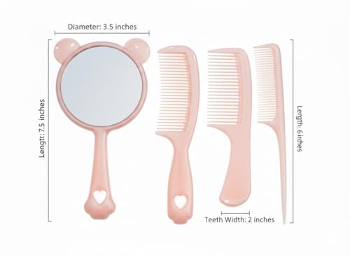 Generic - طقم مراة يد مع 3 امشاط للنساء والفتيات هدية للبنات، عبوة من 4 قطع (متعددة الالوان)