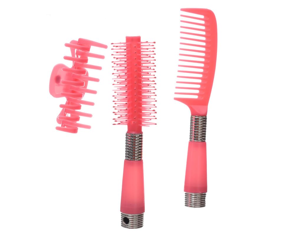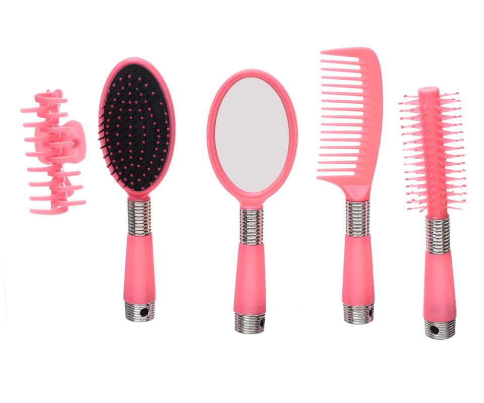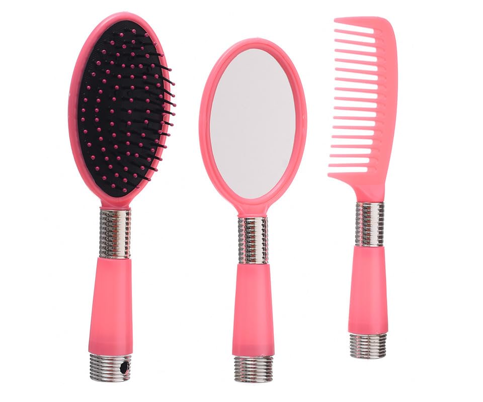 Generic - طقم مراية يد مع مشط وفرشاة للنساء والفتيات - وردي