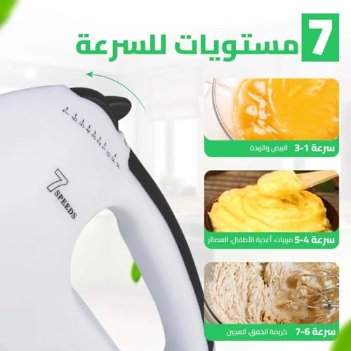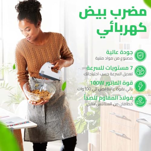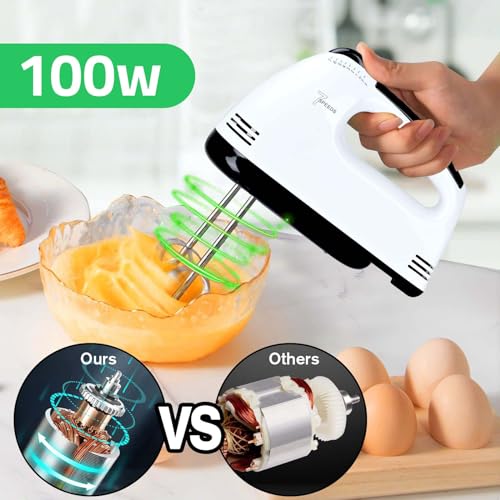 Generic - Hand Mixer 100W Power, 7 Speed Settings, Stainless Steel Twin Beaters, for Whip, Fold, Blend, and Cream