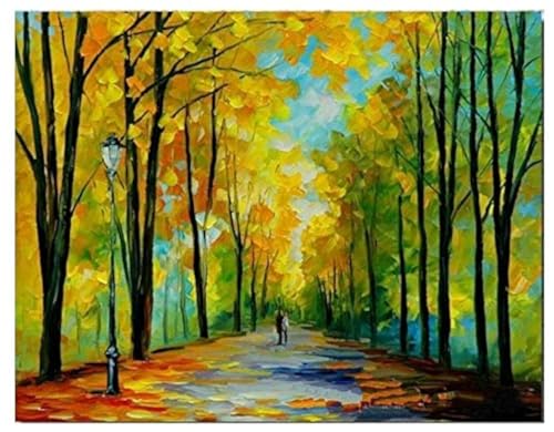 Other - لوحة مرسومة باليد زيت عبارة عن منظر طبيعي لطريق وشجرة بدون إطار 110×80 سم موديل رقم WKH0437، من اذر، متعدد