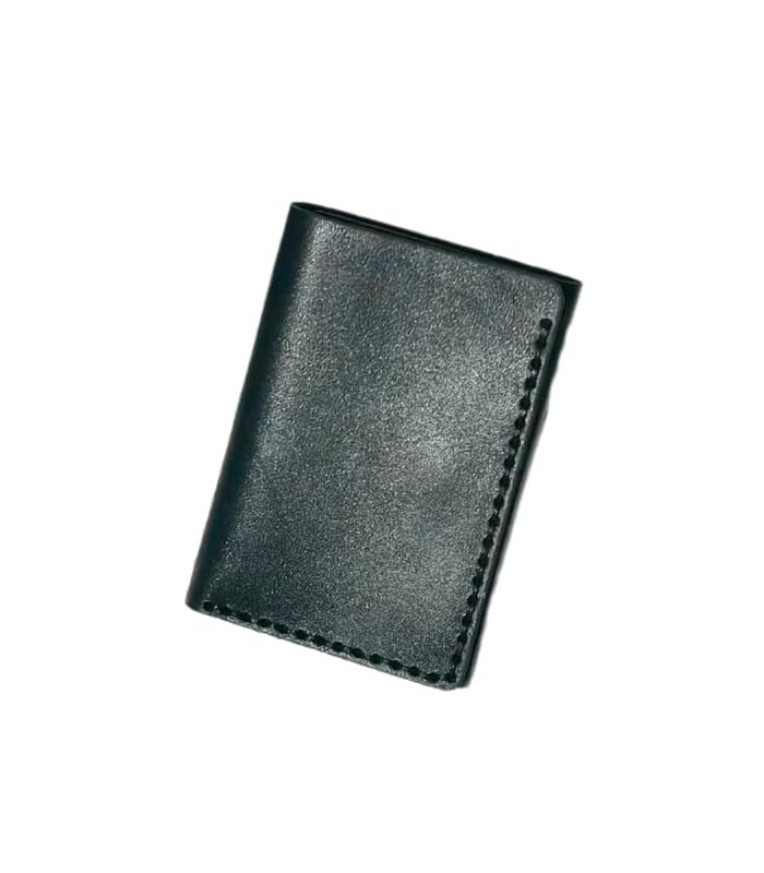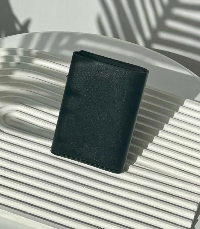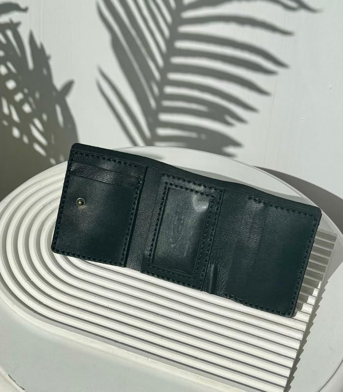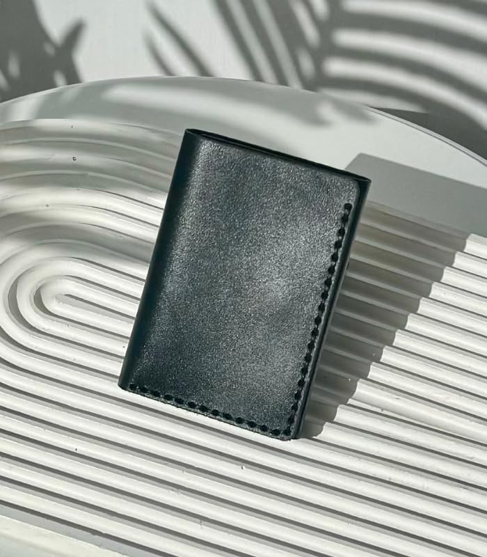Generic - محفظة جلدية مطوية ثلاثية مخيطة يدوياً، جلد طبيعي، أخضر داكن وبني، 10.5 × 7 سم، متعددة الجيوب، تصميم نحيف للاستخدام اليومي (Black)
