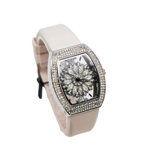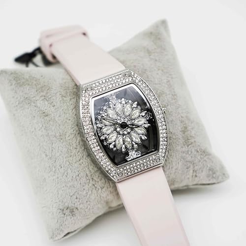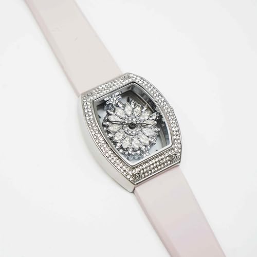 Generic - Hand watch for women Ladies Crystal Flower Watch with Rhinestone Bezel, light rose Silicone Band, Silver