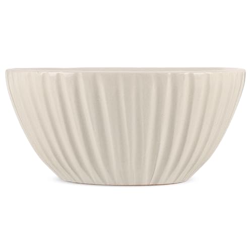 Generic - وعاء تقديم سيراميك مصنوع يدويا، 22 سم، كريمي غير لامع، نمط مموج