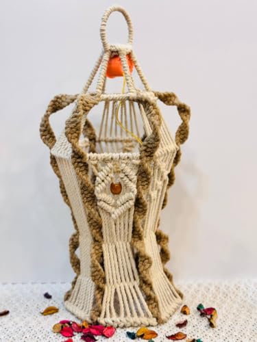 Generic - Handcrafted Macrame Lantern, Decorative Rope Lamp Shade, Natural Jute and Brown Twisted Pattern, 3D Geometric Design