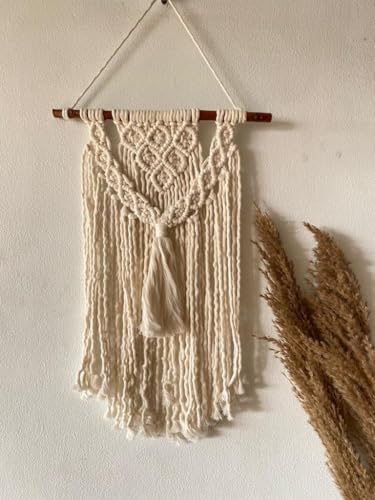 Generic - Handcrafted Macrame Wall Hanging, Natural Cotton, Wooden Rod, Boho Home Decor, 60 x 40 cm, Intricate Knotted Design
