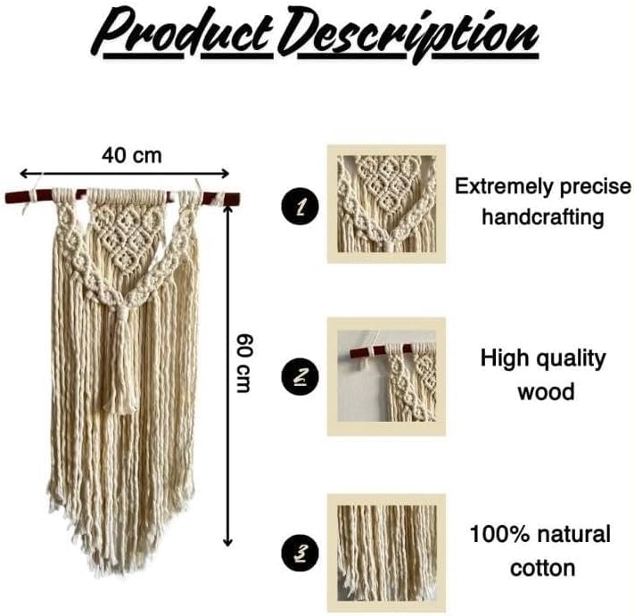 - DIMENSIONS: Large macrame wall hanging measuring 60 cm in length and 40 cm in width, perfect for creating an eye-catching focal point in any room
