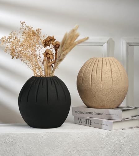 Generic - Handcrafted Pottery Centerpiece Vase – Rustic Ceramic Table Vase for Dried Flowers, Pampas Grass & Home Decor – Earthy Boho Farmhouse Accent for Dining Table, Living Room (black)