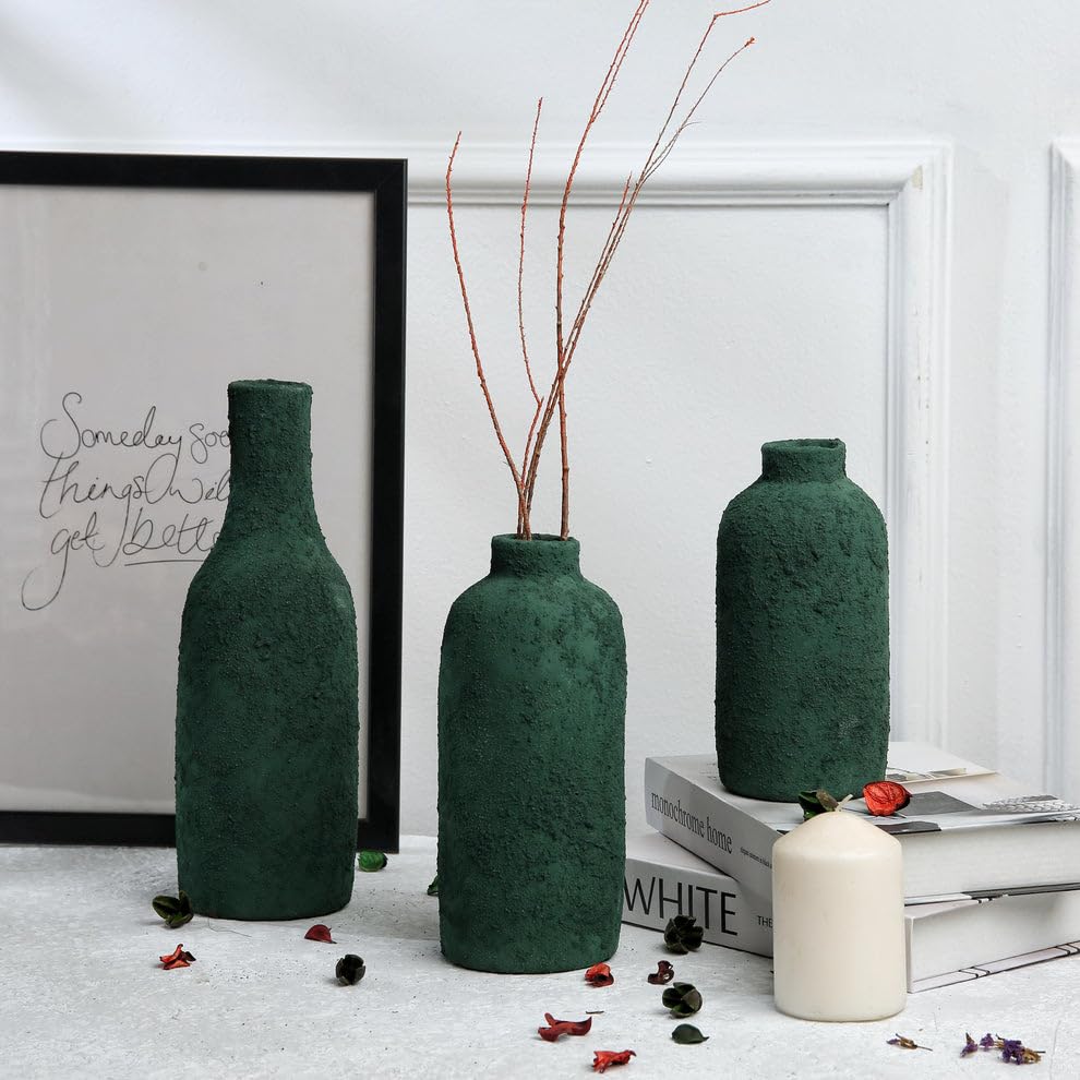 Generic - مزهريات فخارية مصنوعة يدويا - مجموعة مزهريات زهور من السيراميك الريفي للزهور المجففة وعشب البامبا وديكور المنزل - قطعة مركزية لطاولة المزرعة بوهو او لمسة رف (اخضر)