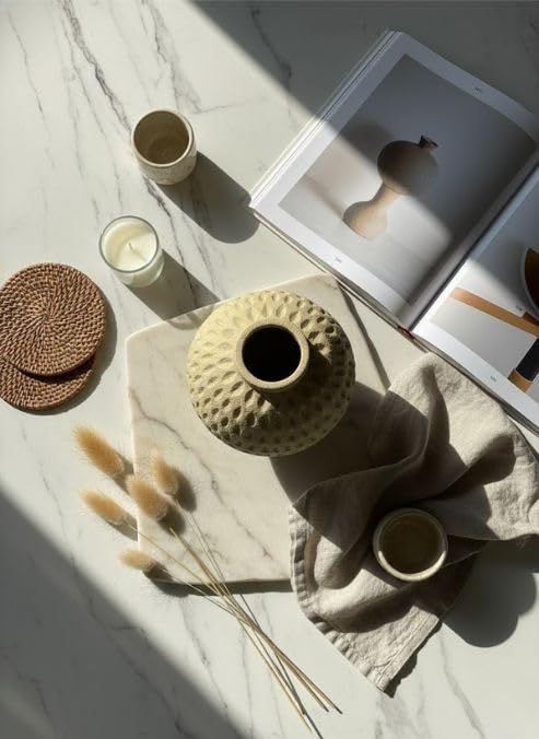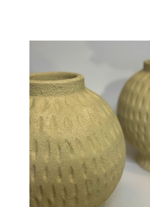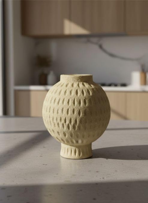 - MODERN DESIGN: Textured round por vase in a warm beige tone featuring an eye-catching geometric pattern that adds contemporary style and visual interest to any living space