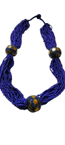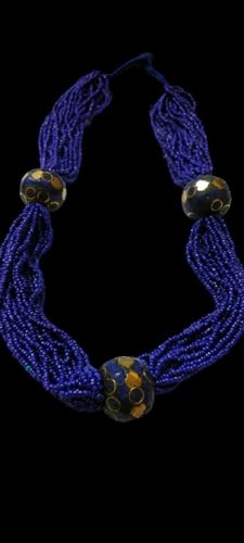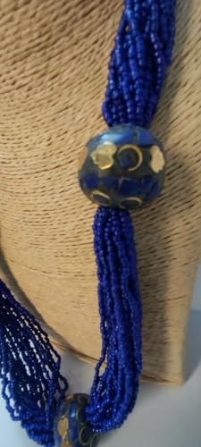 Generic - Handcrafted Statement Necklace, Royal Blue Multi-Strand with Black Beads, Casual Fashion Jewelry