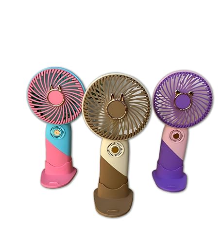 Generic - Handheld Fan - Sleek mini design with powerful airflow, USB charging capability, 3 adjustable speeds, built-in desk stand, compact size for portability and easy storage (3قطع)