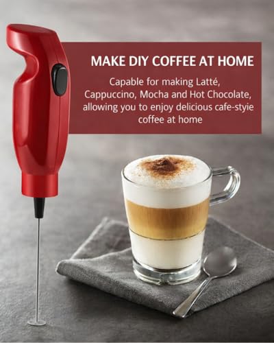 Generic - Handheld Milk Frother Electric Coffee Whisk, Stainless Steel Foam Maker for Cappuccino, Latte, Hot Chocolate and Drinks (Red)