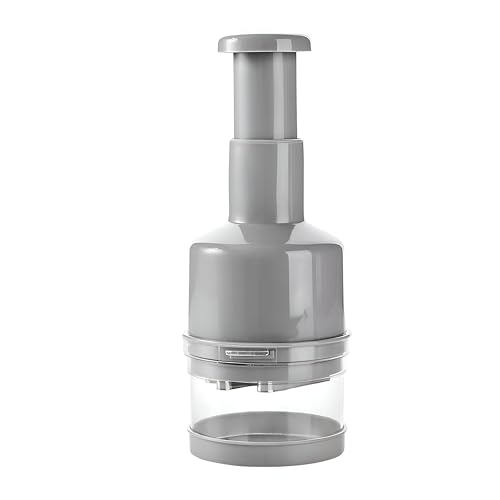 - Its ergonomic, comfortable grip and lightweight design make it easy to operate for extended periods. This effortless operation is complemented by a safe, secure container that keeps the chopped ingredients neatly contained, preventing messes.