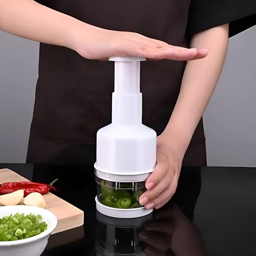 - The product features a simple, one-action pressing mechanism: just place the vegetables or garlic inside the base, then press the top with your palm. Increasing the pressure results in finer and more precise chopping, giving you control over the texture of your ingredients.
