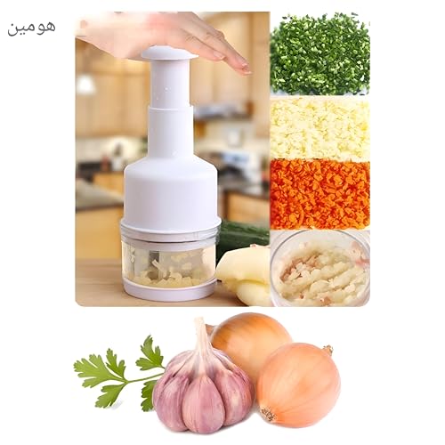 - This manual garlic, onion, and vegetable chopper and grinder is designed with a compact size, making it perfect for easy storage and handling. Its ergonomic hand grip provides comfort during use, enabling precise and effortless chopping or grinding of various ingredients.