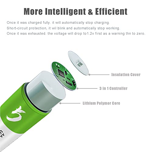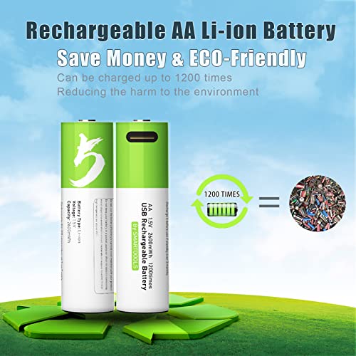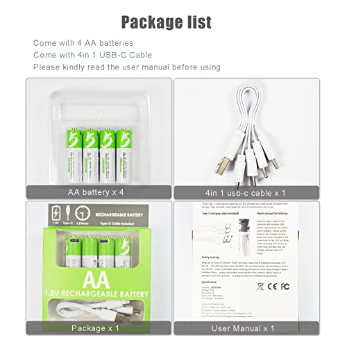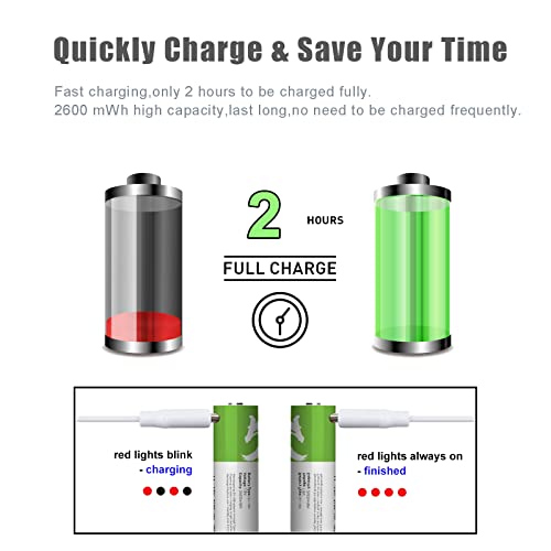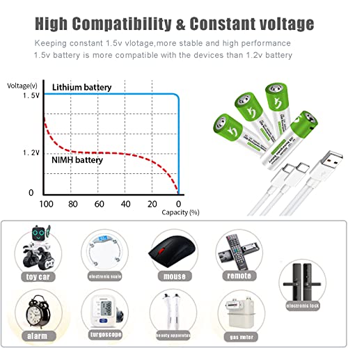 HANDI-KAFU - USB Rechargeable AA Lithium ion Battery High Capacity 1.5V 2600mWh(1700mAh) 1.5 H Fast Charge 1200 Cycles with Type C Cable - 4 Pack