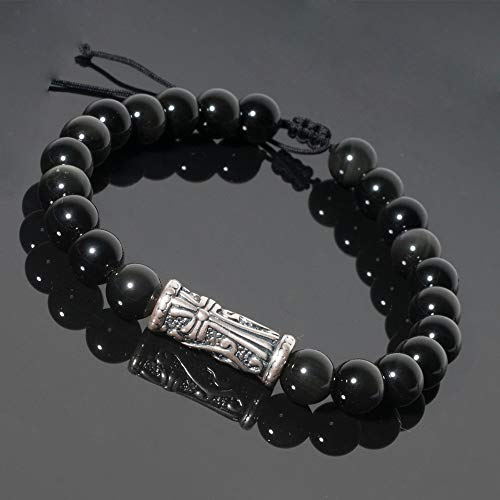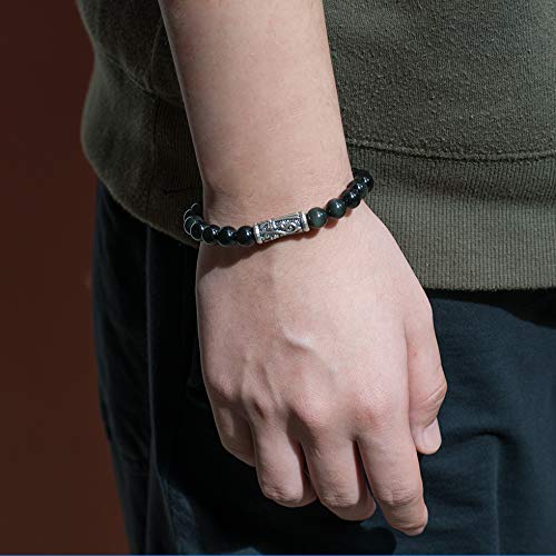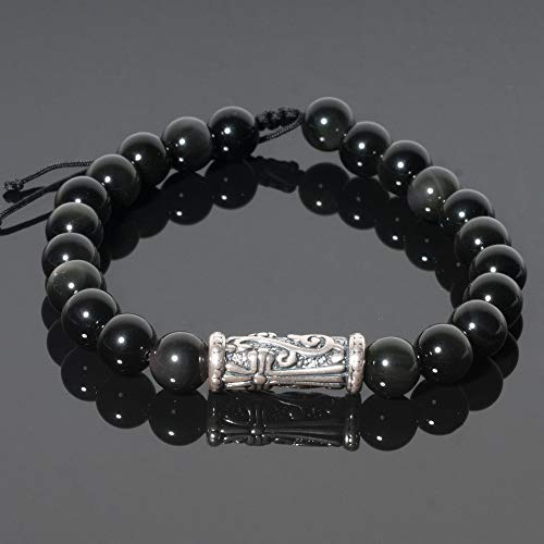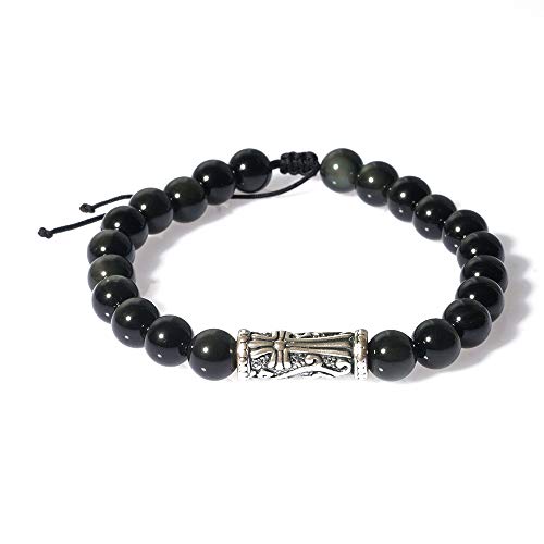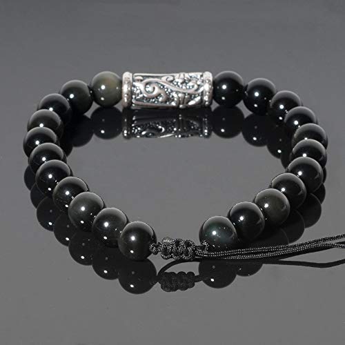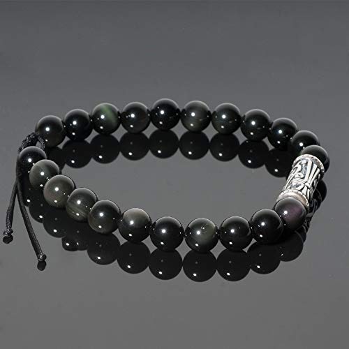 generic - اساور مصنوعة يدويا من احجار الزجاج البركاني الاسود بالوان قوس قزح 8 ملم، اساور خرز للنساء والرجال