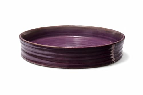Generic - Handmade Artisan Clay Serving Bowl 24cm – Wide Shallow Salad & Pasta Bowl – Natural Glazed Stoneware – Made in Egypt (Aubergine Brown)