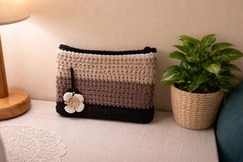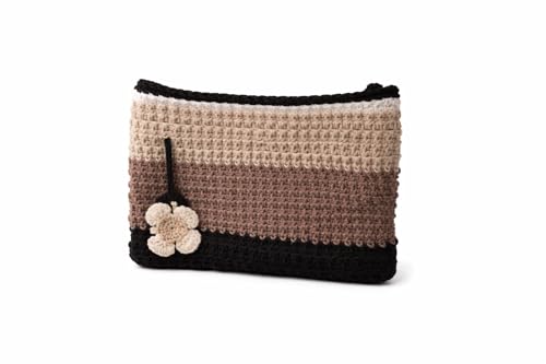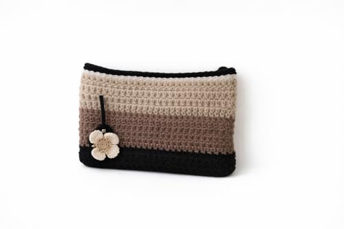 Wooden Touchy - شنطة يد كروشيه مصنوعة يدويا للنساء - محفظة صغيرة بنمط بوهو مع بطانة من الساتان وسحاب للاغلاق