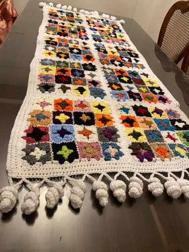 Generic - مفرش كروشيه يدوي مصنوع، نمط زهور متعدد الألوان، أبيض مع شراشيب، قطن، تصميم فني تقليدي_ يناسب العديد من الاغراض _ مقاس متر ونص في 75 سم