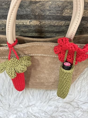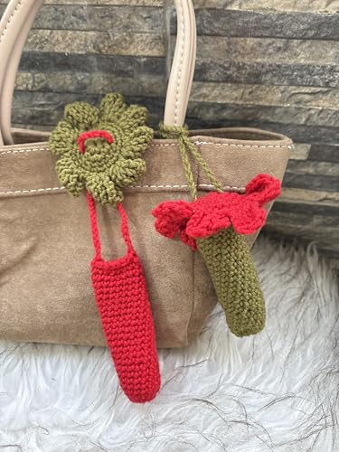 Generic - سلسلة مفاتيح حامل مرطب الشفاه بتصميم زهرة كروشيه مصنوعة يدويًا - جراب لطيف لأحمر الشفاه/ملمع الشفاه للشنط - مجموعة من قطعتين كروشيه