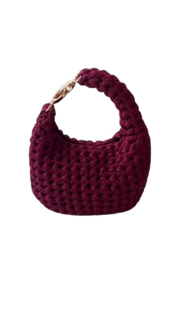 Generic - Handmade Crochet Hobo Handbag, Burgundy Knit Cotton, Mini Shoulder Bag