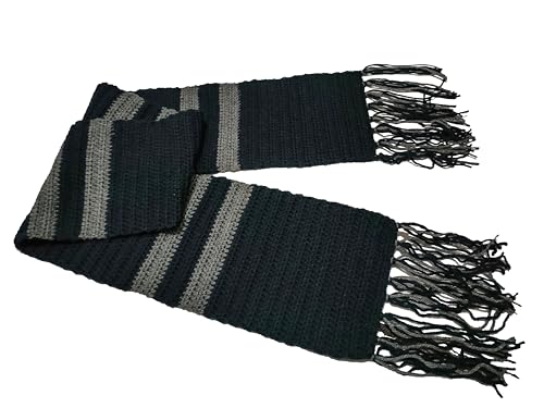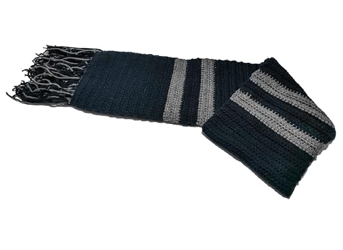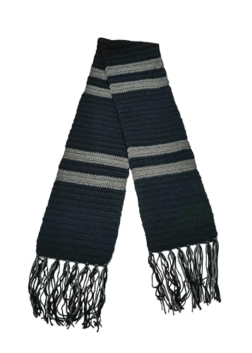 Generic - سكارف شتوي كروشيه مصنوع يدويًا، خطوط بلون كحلي ورمادي، مقاس 180 × 20 سم مع شراشيب