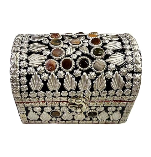 Generic - علبة مجوهرات خشبية يدوي مطعمة بالأحجار الكريمة بطانة قطيفة فخمة لحفظ الخواتم والأكسسوارات مقاس 16 في 10 في 11 سنتي | من عام