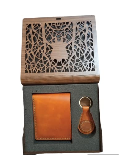 Generic - Handmade Genuine Leather Wallet With Wooden Box For Men - Camel in Black (Handmade)