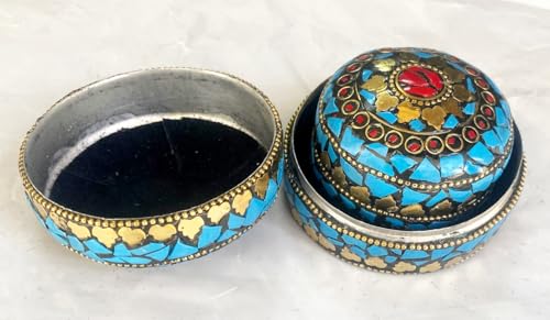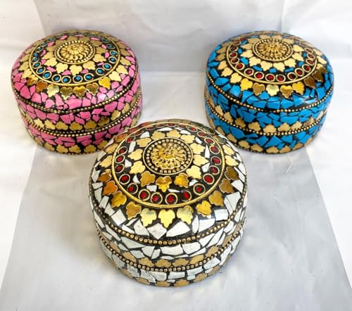 Generic - Handmade Indian Heart Shaped Interlocking Jewelry Boxes 3 Piece Quilted Velvet Inlaid Copper Stone Jewelry Storage Box for Jewelry Accessories Height 7 6 5 cm | By Generic