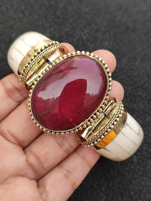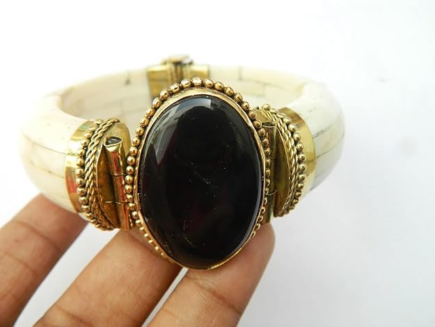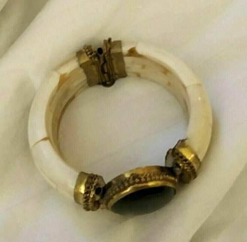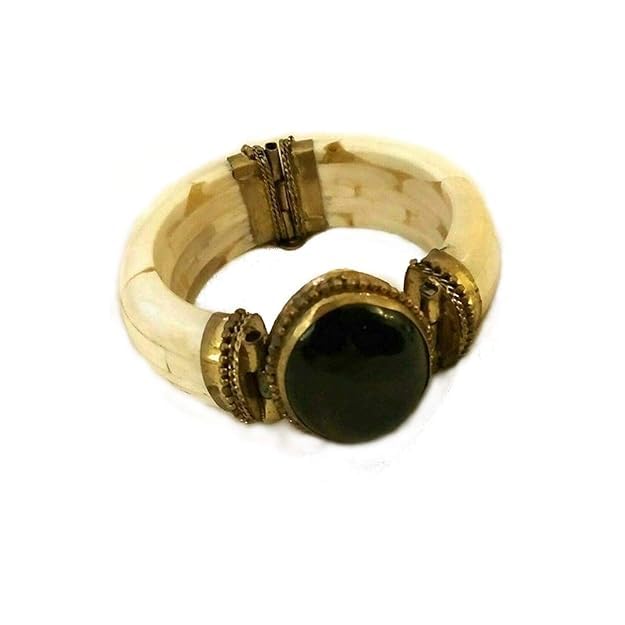 Generic - Handmade Indian Premium Natural Bone Gowisha with Colorful Stone Lobes and Handcrafted Copper Design 8 cm Diameter for a Renewed and Elegant Look for All Occasions
