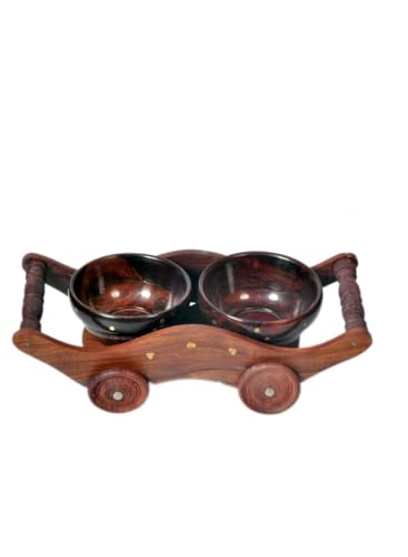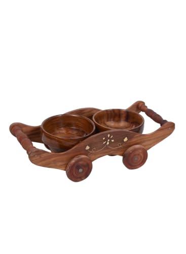 generic - عربة وجبات خفيفة هندية مصنوعة يدويا من خشب الشيشام - 2 وعاء | حجم كبير (36 × 11 سم)